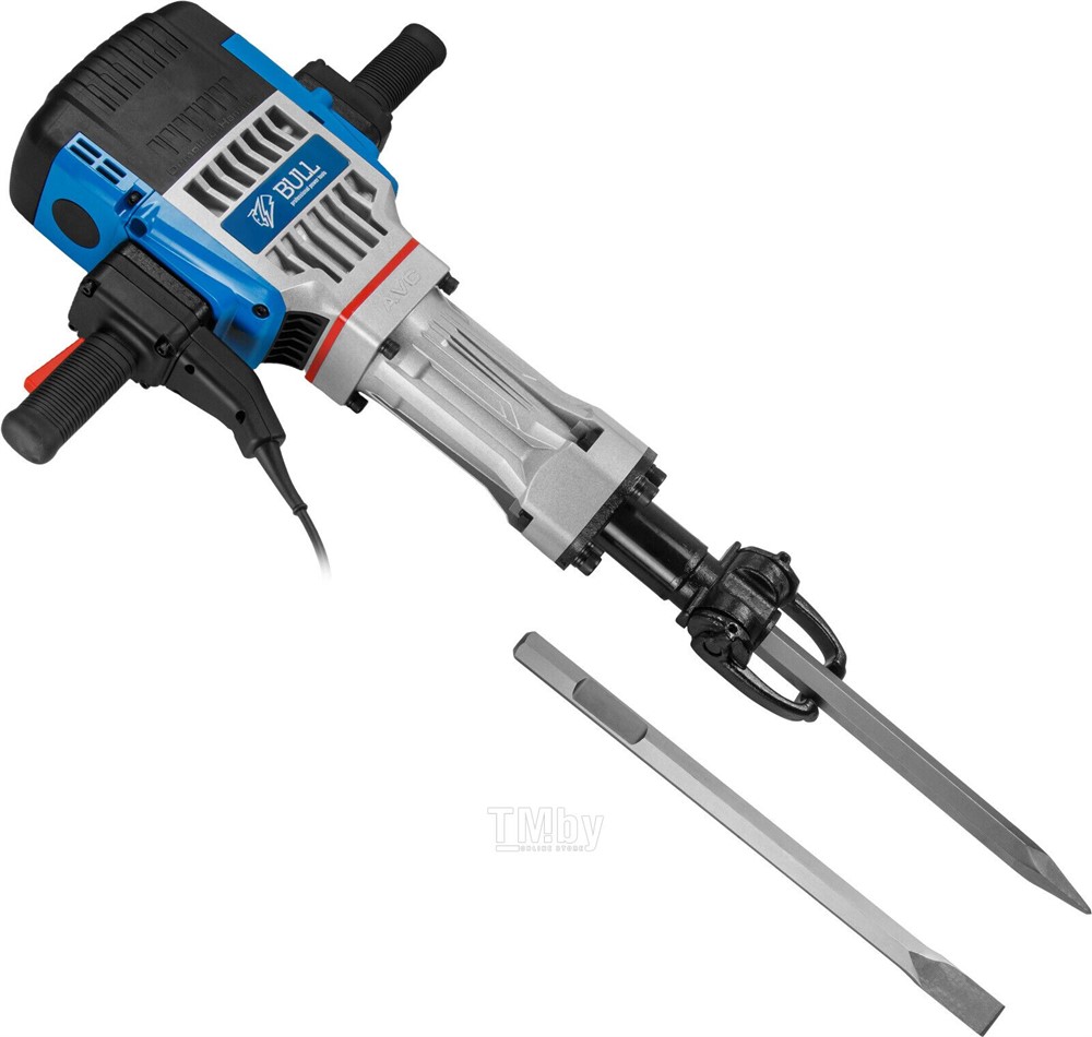 Отбойный молоток предназначен для дробления бетона, слома бетонных покрытий, проделывания проёмов, а также ведения самых сложных демонтажных работ. Шестигранный патрон НЕХ 28 мм позволяет надежно фиксировать долота, а также обеспечить удобство смены. Модель обладает особой системой системой виброгашения, что делает работу менее утомительной для оператора. Корпус редуктора изготовлен из магниевого сплава, что обеспечивает дополнительную защиту внутренних узлов, а также лучший отвод тепла. Обладает оптимальным удобством использования: эргономичные рукоятки с мягкой накладкой и низко расположенный центр тяжести инструмента обеспечивают оптимальный комфорт в использовании. Отбойный молоток BULL также имеет морозоустойчивый резиновый кабель 5 м.